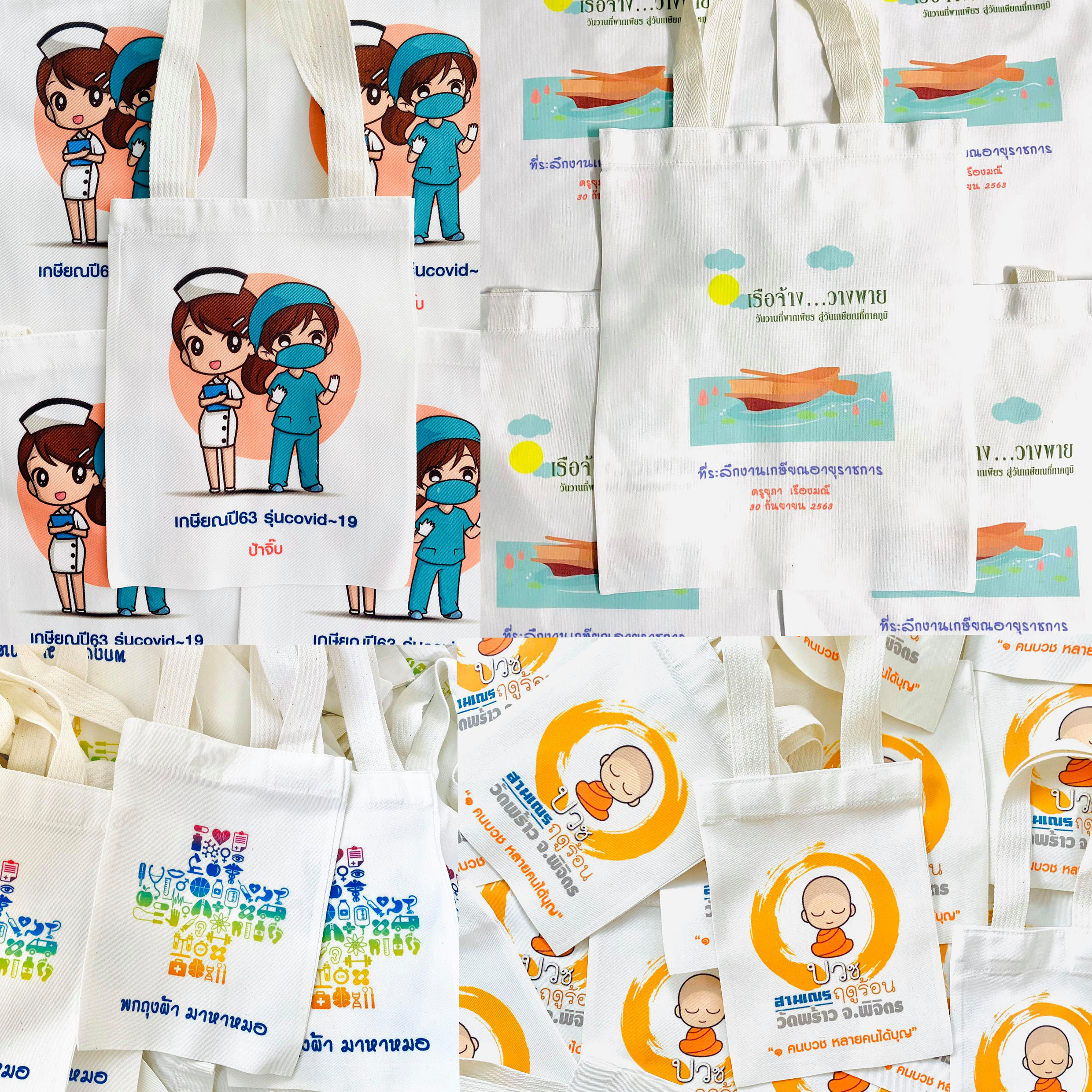 กระเป๋าผ้าดิบพิมพ์ลายไม่จำกัดสี